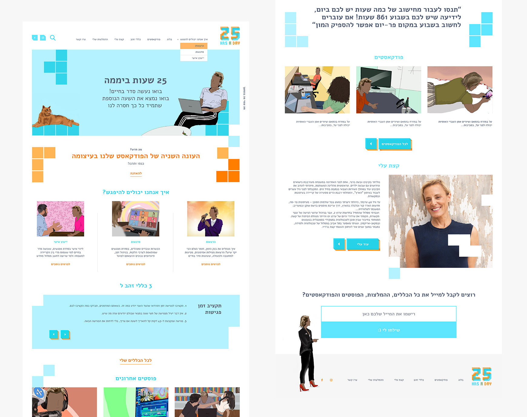I carried this concept into the design, creating a website inspired by the Tetris game. The site features beautiful illustrations by Anna Rudner, Ruthie's daughter, which add a charming and personal touch. The end result is a fun, interactive experience that not only informs but also visually represents the art of time management.